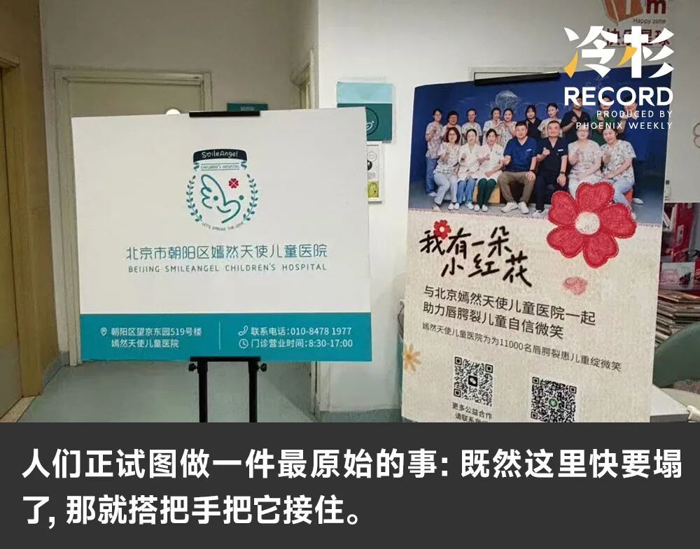 “一整天了,不断有人过来(捐款)。”旁边诊室的医生感叹,像是“农村赶大集”。人们正试图做一件最原始的事:既然这里快要塌了,那就搭把手把它接住。